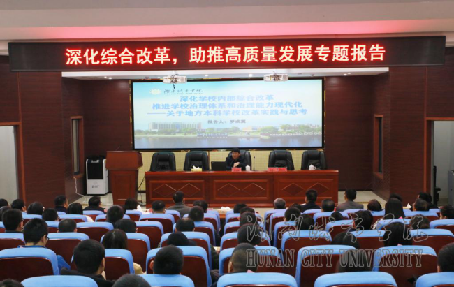 罗成翼详细阐述了2016年以来beat365官网推进综合改革的背景、谋划、举措、成效、保障及特点。他指出,学校新班子上任后,以“建什么样的城市学院,如何发展城市学院”为主题,在全校范围内深入开展“转型发展、内涵发展、特色发展” 大讨论活动,形成了“一二三五”发展战略。着力推进“六破六立”综合改革,以大改革推进快发展。人才培养质量明显提高,办学效益明显增强,核心竞争力明显提升,社会反响全面向好。学校构建了班子抓“四力”、干部抓“六(八)条”、党建抓“二三五工程”的从严治党话语体系,把坚持党的领导、加强党的建设贯穿高校改革发展和立德树人的全过程,将党建的“红色势能”转化为发展的“工作动能”。
