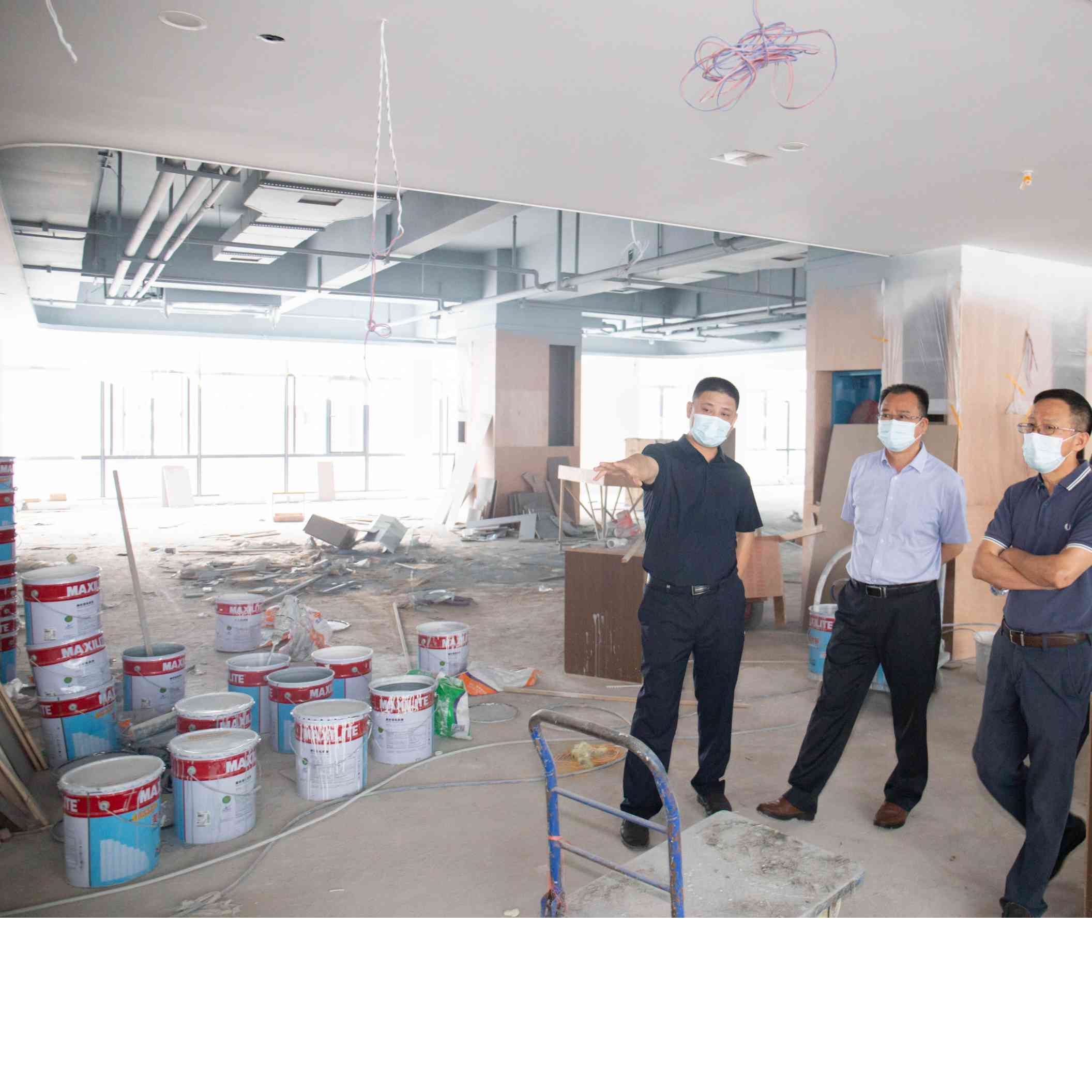 8月13日下午,beat365中国唯一官网党委书记李建奇,副校长谭献良,党委委员、组织部部长吕贤军,产业联合党总支书记徐习军,看望慰问了在疫情期间仍工作在产教融合大楼(长沙)装修施工现场的员工并现场指导了下阶段工作。设计院院长李志学、副院长刘翔、总工程师喻常雄等人员陪同。