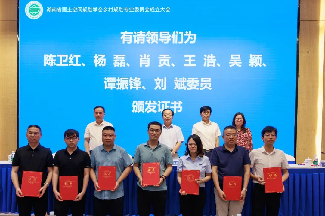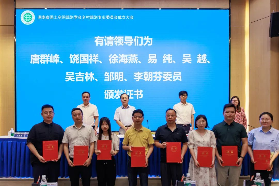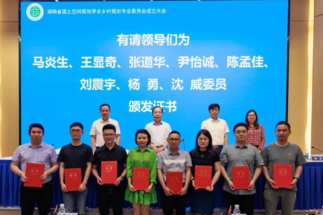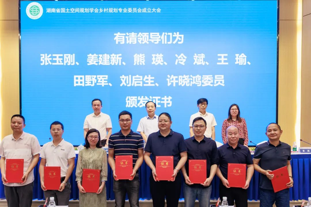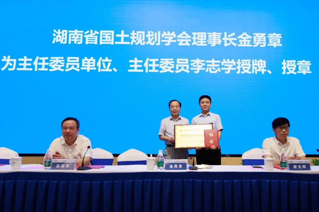 会上,谢光辉宣读了湖南省国土空间规划学会《关于乡村规划专业委员会组成人员的通知》。设计院为主任委员单位、院长李志学为主任委员。会议对主任委员、副主任委员、委员单位和个人授牌授章和颁发证书。