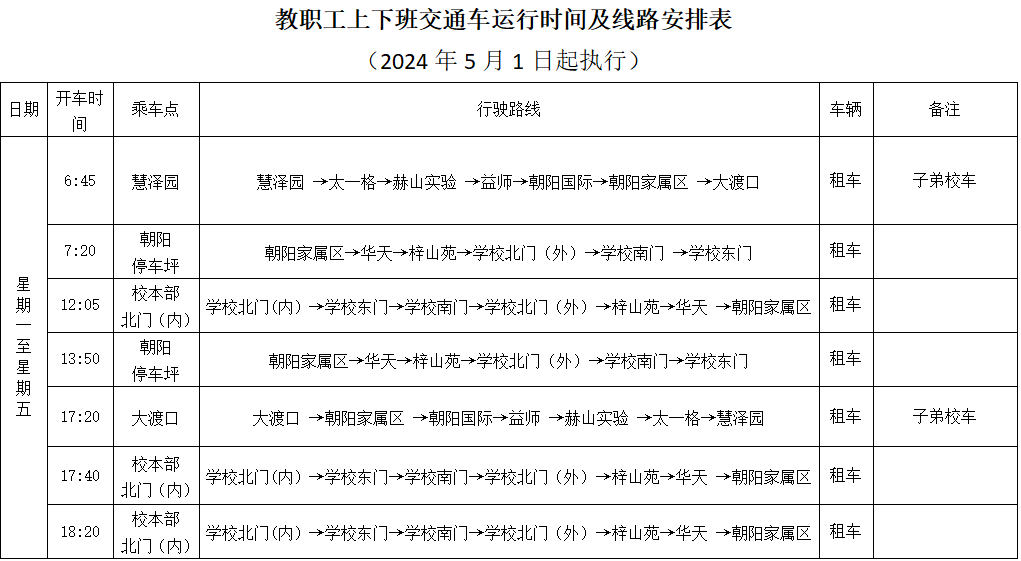 2.教职工上下班交通车运行时间及线路安排表