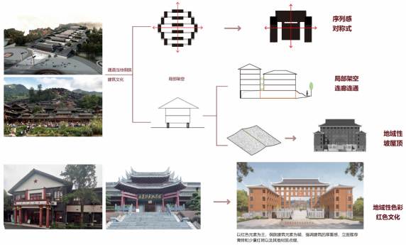 通过侗族风貌建筑体现民族元素,通过革命文化景观体现红色元素,充分尊重通道当地的历史文脉的同时,又能体现建筑发展的趋势和潮流。