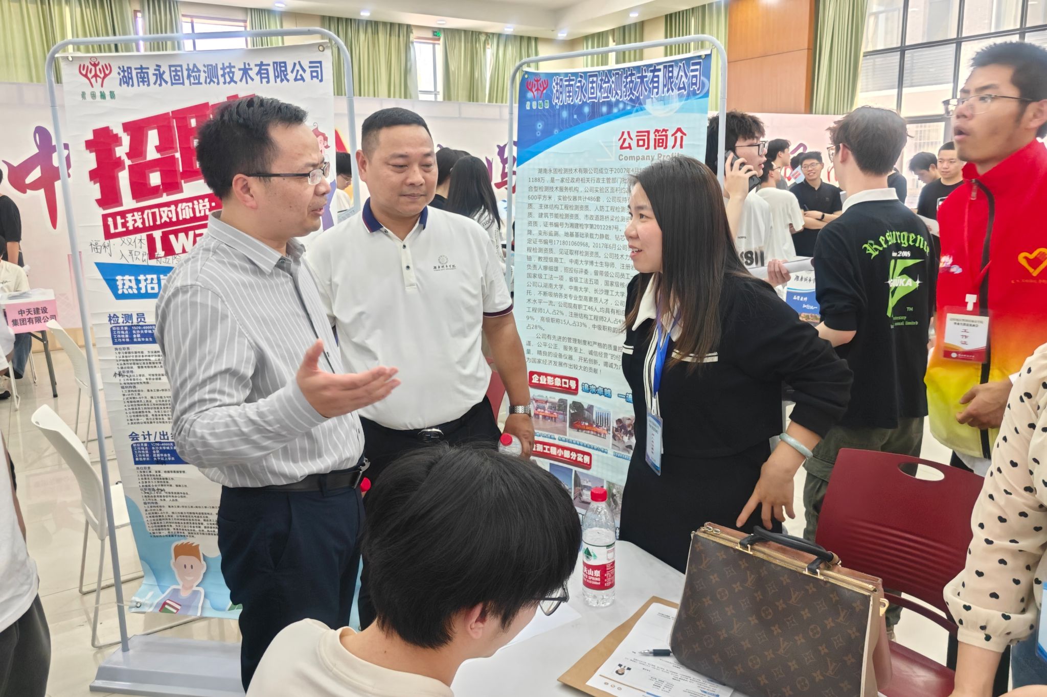 由学生工作人员组成的志愿服务团队,成为此次招聘会上一道亮丽的风景线。他们身着统一服装,有条不紊地做好现场服务工作。为保障招聘工作高效进行,志愿者们采用“一对一”服务模式,面对各种问题,志愿者们迅速响应,积极解决。