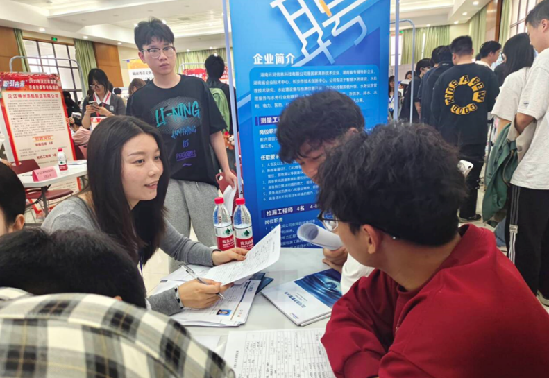 本次招聘会吸引了核工业华东建设工程集团有限公司、广东海悟科技有限公司、湖南省科升水务有限公司、湖南云河信息科技有限公司等多家省内外知名企业参会,涵盖给水排水、能源应用、供热工程、测绘工程、智能制造、土木工程等多个行业,吸引了300余名毕业生前来求职。