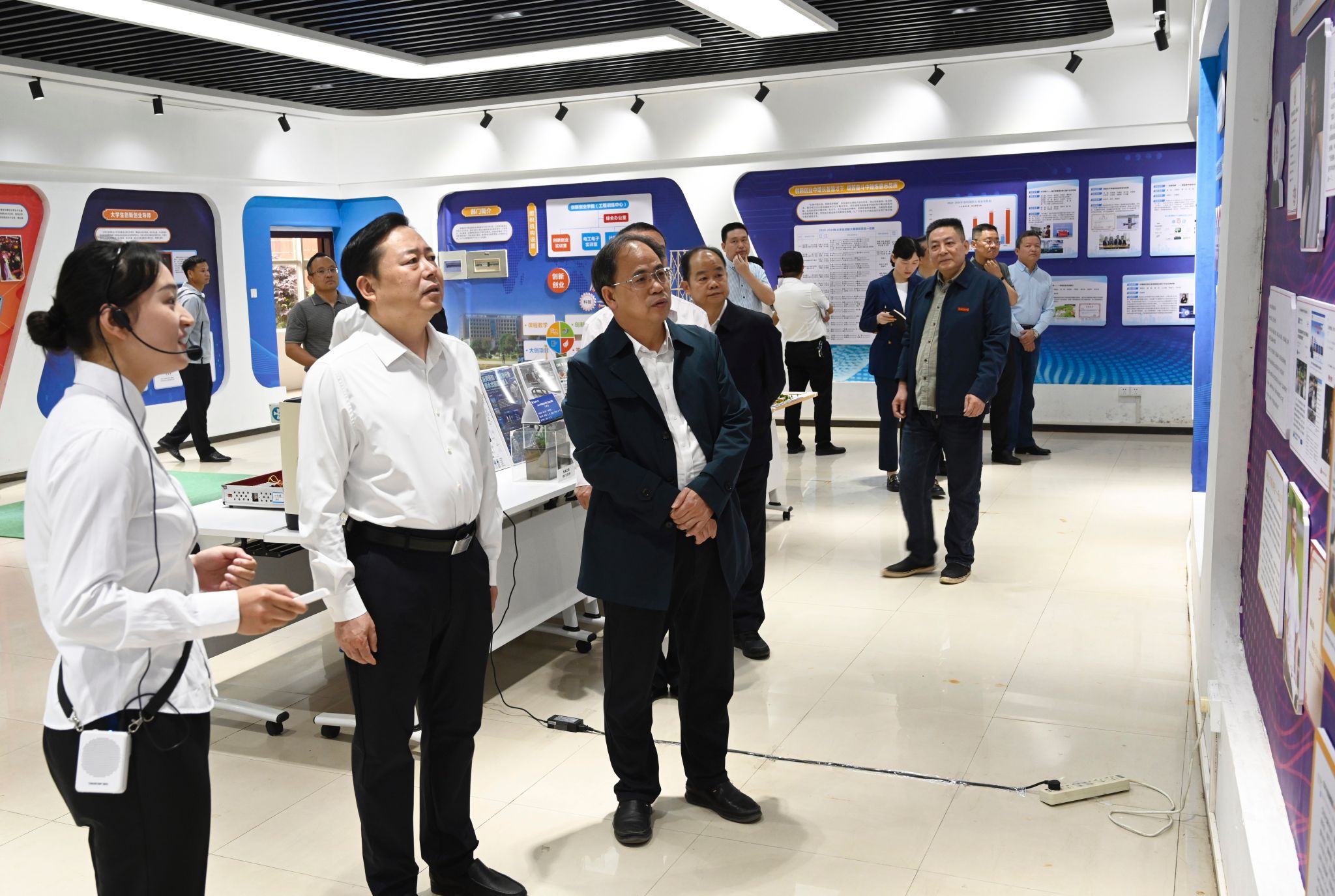 熊炜一行首先来到beat365官网大学生创客中心,参观了创新创业展厅、路演厅、团队工作室和项目咨询室,察看师生创新创业成果展示,充分肯定了beat365官网学子在科技创新方面展现出的专业素养和创造才能。