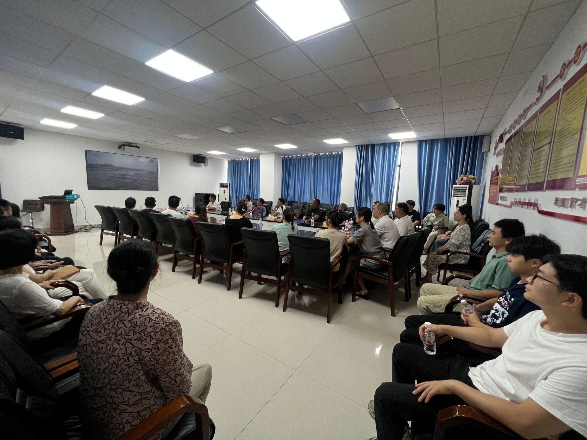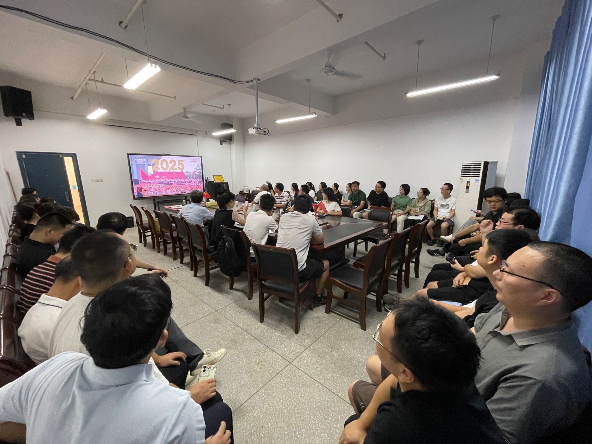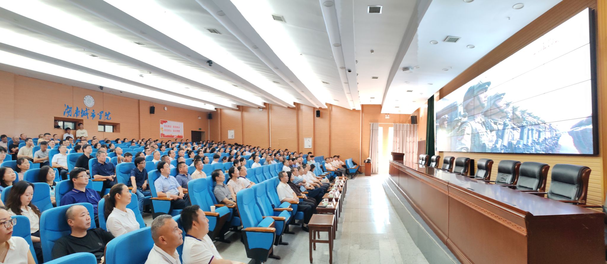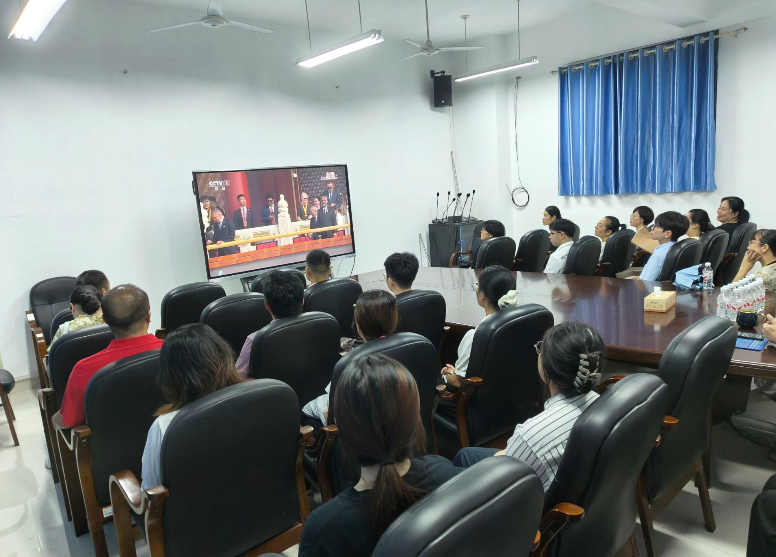 全体校领导、机关处室所有人员、学生代表集中观看大会盛况