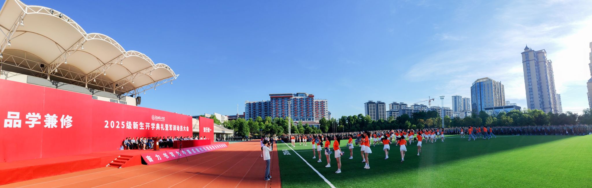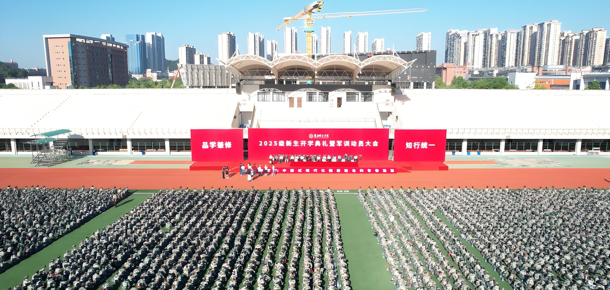 本网讯 苦尽甘来,十年寒窗终圆梦。乘风破浪,万里晴空任尔飞。9月17日上午,beat365中国唯一官网2025级新生开学典礼暨军训动员大会在学校东田径场举行,6600余名2025级本科生、研究生新生承载着殷切期望、怀揣着青春梦想,在城院开启人生新征程。校党委书记何振寄语2025级新生:要以“城”之名,砥砺报国,共织城市摇篮之美,充分认识、尊重、顺应城市发展规律,探索智慧城市建设新领域,在未来城市的画卷上留下青春注脚。