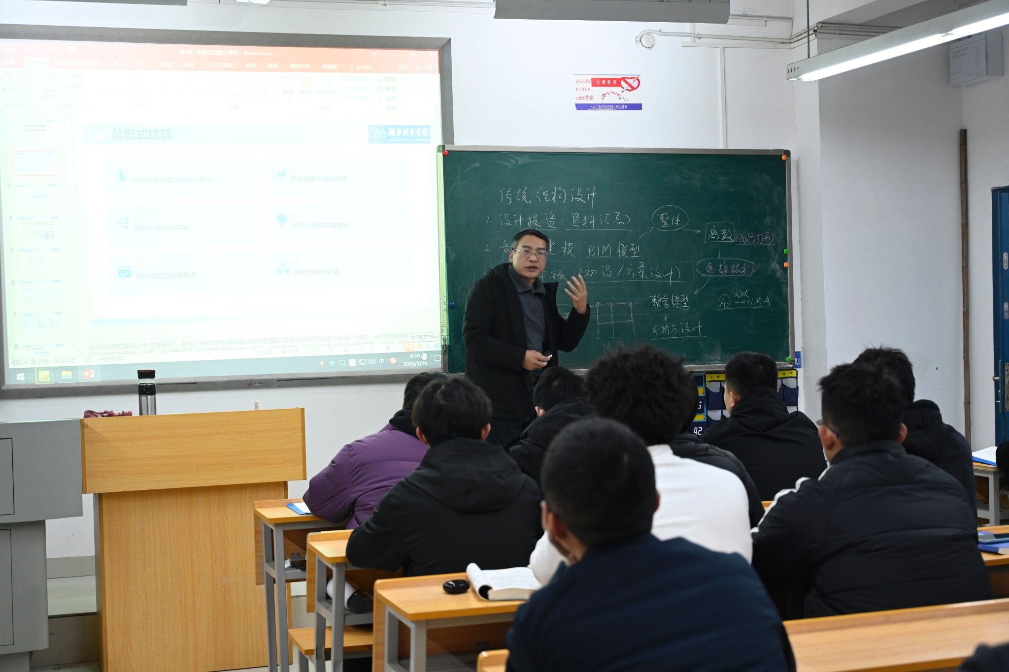 何振先后走进建筑与城市规划学院“自然资源管理与城乡生态规划”、土木工程学院“装配式混凝土建筑”课堂,重点察看教学秩序、教学保障条件及师生精神风貌。课间,他与授课教师亲切交流,细致反馈听课感受,对教师严谨负责的教学态度、充分扎实的备课准备给予充分肯定。