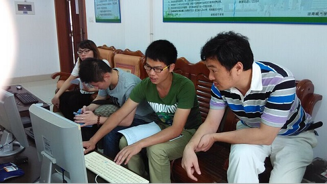 图为计财处工作人员指导学生进行网上自助缴费操作