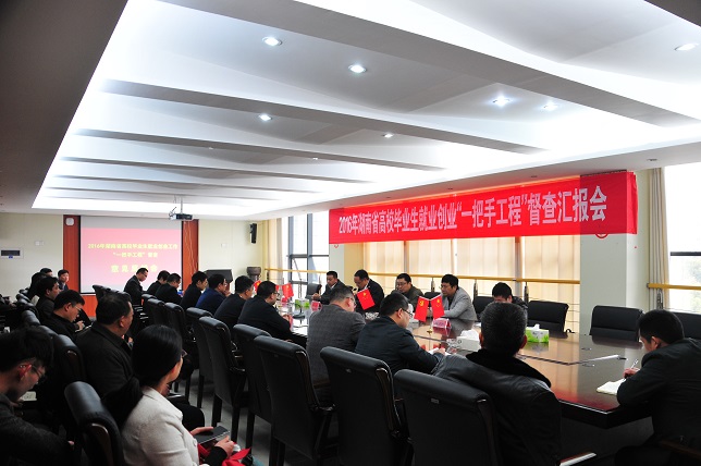 副校长汤放华就beat365官网毕业生就业创业工作“一把手工程”落实情况向督查组作了汇报。他重点介绍了beat365官网以建设湖南省就业创业示范校为契机,积极构建“一个目标,双轮驱动,三全服务,四课指导,五位一体精准帮扶就业”的就业创业工作新模式。