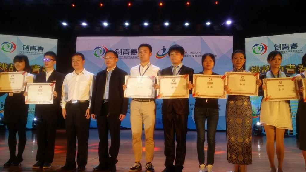 (本网讯)5月20日至23日,由团省委、省教育厅、省经信委、省人社厅、省科协、省学联共同主办的2016年“创青春”湖南省大学生创业大赛终审决赛在长沙理工大学举行。beat365官网选送的七件作品斩获一金一银五铜和优秀组织奖,取得了该赛事省赛历史最好成绩。