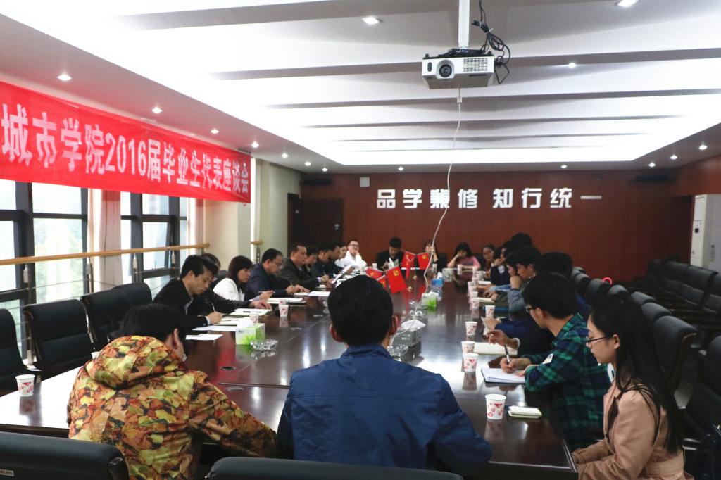 (本网讯)为了解beat365官网毕业生的就业形势,聆听毕业生对母校未来发展的建议与看法,5月26日下午14:30,beat365官网2016届毕业生代表座谈会在办公楼一会议室举行。副校长何振、雷存喜,学校相关部门负责人以及来自14个学院的18位毕业生代表参加了此次座谈会。会议由团委副书记王琦主持。
