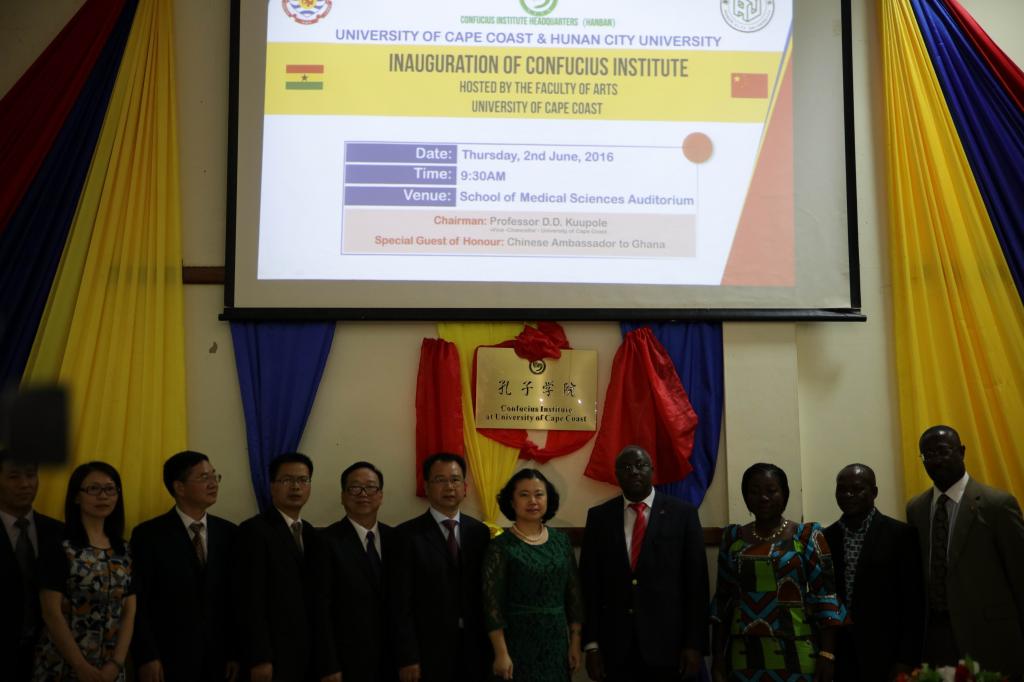 (本网讯)加纳当地时间6月2日上午,beat365官网与加纳海岸角大学合作创办的孔子学院在该校大礼堂举行了揭牌仪式。中国驻加纳大使馆、加纳文化旅游部、湖南省教育厅代表团、beat365官网代表团、当地政府相关机构负责人、海岸角大学师生以及各界嘉宾共600余人出席了揭牌仪式。