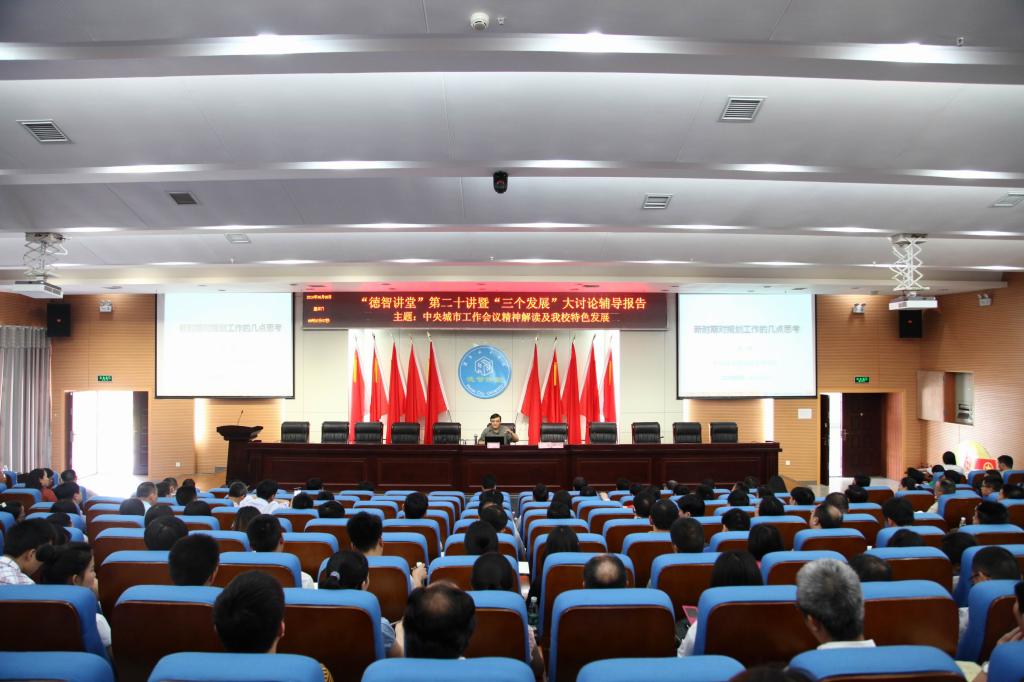 (本网讯)6月5日上午,学校在图书馆报告厅举行德智讲堂第二十讲暨“三个发展”大讨论辅导报告,邀请中国城市规划设计研究院总规划师张兵作了题为“新时期对规划工作的几点思考”的报告。在家的校领导,全校副科级以上干部,教工党支部书记、学生党支部书记、建筑与城市规划学院教师代表、设计院代表等300余人参加了报告会。会议由副校长汤放华主持。