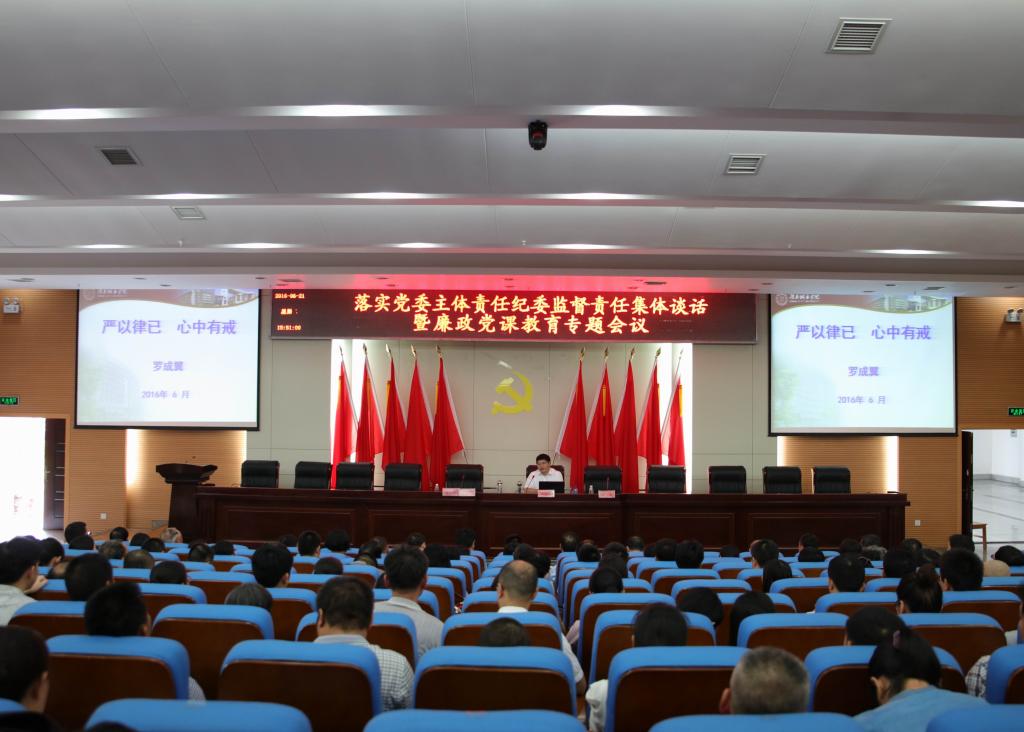 (本网讯)6月21日下午,beat365官网落实党委主体责任纪委监督责任集体谈话暨廉政党课教育专题会议在图书馆报告厅举行。全体校领导,党代会代表,学校副处级以上干部,机关党总支全体党员、马克思学院、城市管理学院党员代表参加了会议。会议由纪委书记姚春梅主持。