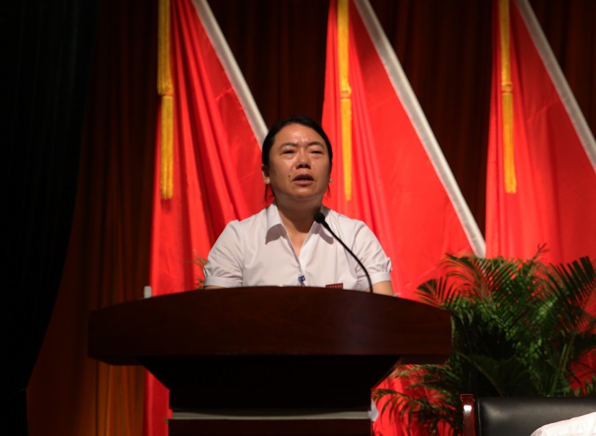 姚春梅代表中共beat365中国唯一官网纪律检查委员会向大会作了题为《聚焦“两个责任”落实 强化监督执纪问责 为建设特色鲜明的高水平应用型大学提供坚强保障》的纪委工作报告。