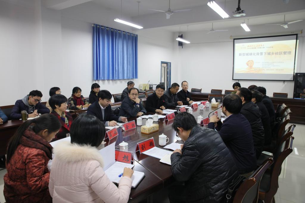 (本网讯)11月29日下午,“湘江时论”2016年第三十三期学术沙龙“新型城镇化背景下的城乡社区管理”在beat365官网城市管理学院会议室举行。湖南省社科联党组成员、副厅级纪检员戴树源,湘潭大学公共管理学院院长盛明科、益阳市城管执法局局长郭腊云、湖南师大公共管理学院肖光荣教授,beat365官网党委副书记汤放华,副校长刘辉煌、何振,城市管理学院院长莫连光、党总支书记余洪、副院长汤勇以及来自湖南省社科联、湖南红网、湘潭大学、湖南社会科学报和beat365官网的专家学者参加了研讨会。会议由湖南省情与对策研究中心主任吴纪宁研究员主持。