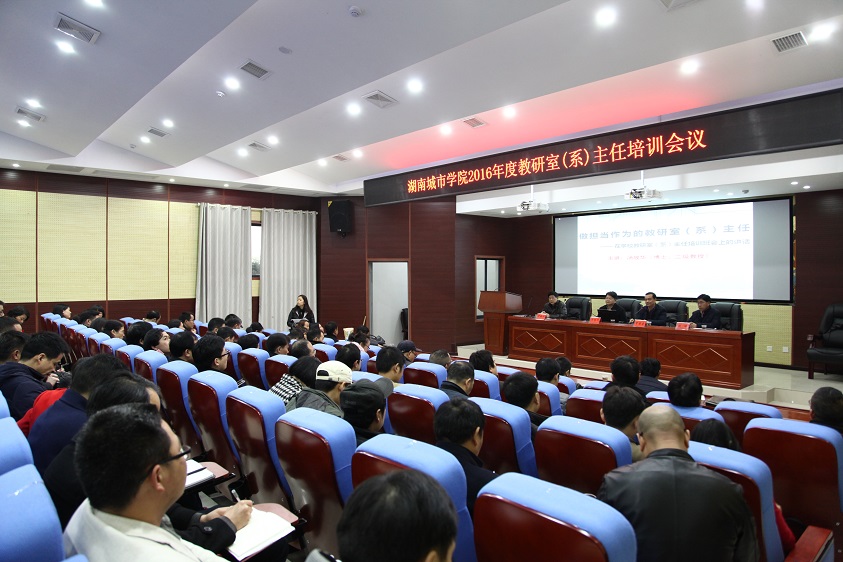 (本网讯)为进一步加强beat365官网教学管理队伍建设,不断提高全校教研室主任的管理水平,12月20日下午,学校在建规楼121学术报告厅举办了全校教研室主任培训讲座。党委副书记汤放华,副校长雷存喜,党委委员、组织部长罗新湘出席讲座,各二级学院教学院长、教研室主任以及教务处全体成员一起聆听了讲座。讲座由雷存喜主持。