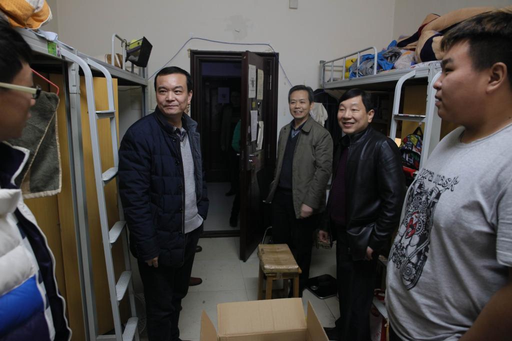 在检查走访过程中,校领导认真听取了相关部门负责人对开学准备工作的情况汇报,对教学设施准备、后勤服务保障和安全隐患排查等方面的工作进行了检查和现场指导。校领导对各单位新学期开学准备工作给予了充分肯定,指出了存在的问题和不足,并对新学期的教学、学生工作以及后勤服务保障等提出了具体要求。一是要切实做好饮食、住宿等后勤保障服务工作,为师生营造良好的学习和生活环境;二是要切实加强学生的安全教育,加强日常管理,加大对学生公寓中存在的安全隐患的查处力度,确保学生学习、生活环境的安全和谐;三是各单位要在保证开学后正常教学、学习和生活秩序的同时,按照2017年学校工作会议的安排部署,理清思路,明晰责任,全力以赴做好自身工作,更好更快地推动学校整体事业的发展。