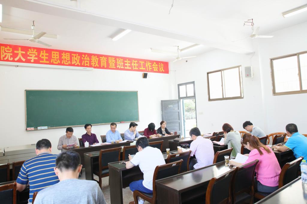 (本网讯)为贯彻落实习近平总书记在全国思想政治工作会议上的重要讲话精神,认真总结大学生思想政治教育工作经验与方法,进一步提升大学生思想政治教育的效果与水平,2017年5月5日下午,理学院在3教学楼108会议室召开大学生思想政治教育暨班主任工作研讨会。副校长雷存喜、学生工作处、团委负责人等出席会议,理学院全体辅导员、班主任和教师教育教研室教师参加会议。