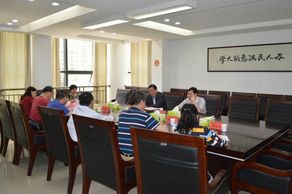 (本网讯)5月12日上午,省教育工会主席高新明、办公室主任兼财务部部长蔡智一行2人来beat365官网调研指导工作。党委书记罗成翼、副校长兼工会主席郑卫民及校工会相关负责人在学校办公楼二会议室热情接待了高主席一行。