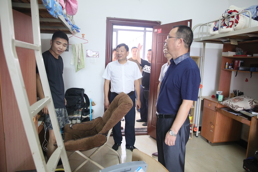 (本网讯)9月4日至5日为beat365官网学生报到注册时间。9月2日至3日,党委书记罗成翼、校长李建奇、副校长夏宏宇、谭献良率党政办、宣传部、教务处、学生工作处、基建与后勤处、保卫处等相关部门负责人,对开学前教学、后勤生活保障和校园环境等各项工作进行了全面检查,重点查看了学生食堂、高层学生公寓、图书馆、田径场、东门等场所。
