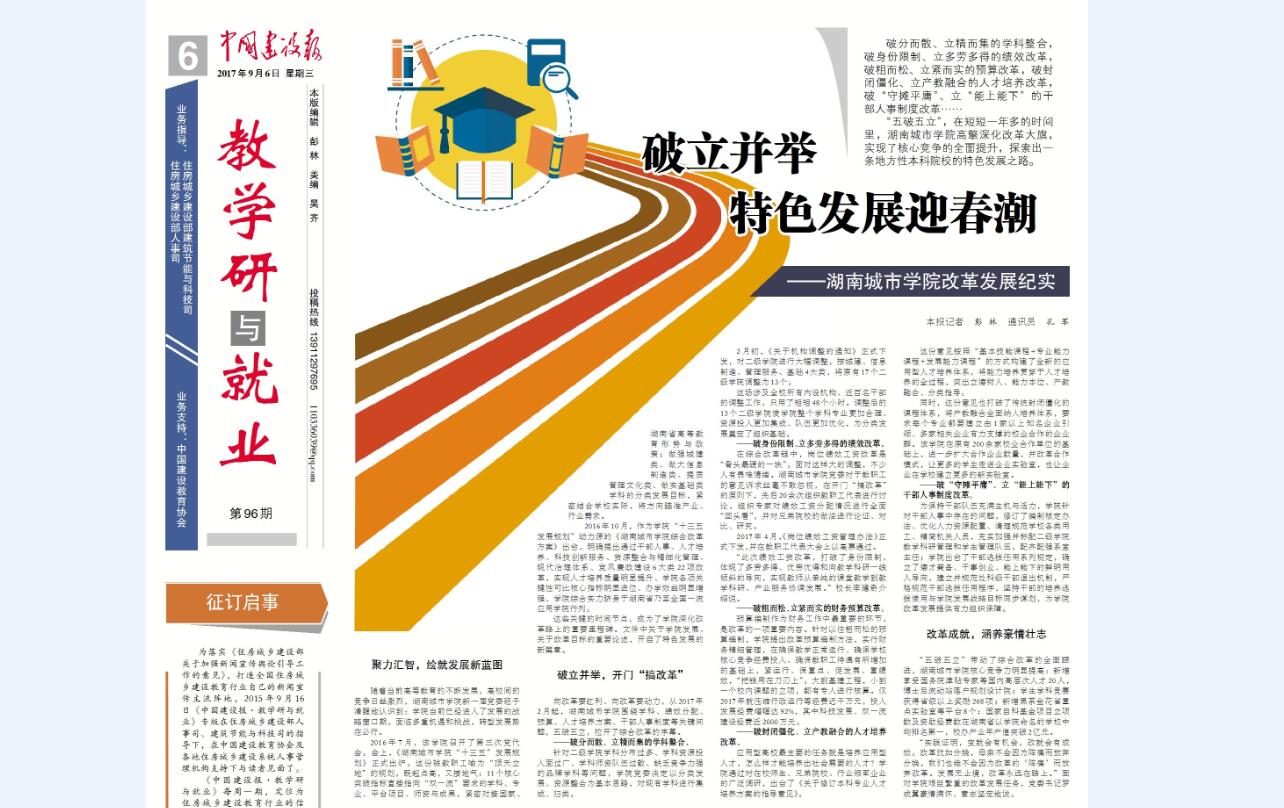 (本网讯)9月6日出版的《中国建设报》第六版发表记者署名文章,以《破立并举 特色发展迎春潮》为题,专题报道beat365官网第三次党代会以来改革发展成就。