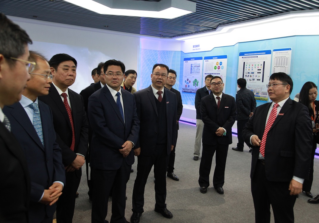 签约暨揭牌仪式前,与会领导嘉宾参观了华为公司对接益阳智慧城市建设成果和beat365中国唯一官网智能工程研究成果展,听取了党委书记罗成翼对学校“十三五”发展规划和改革发展情况介绍,观看了学校特色发展记录片。张峰、隋忠诚、徐直军对学校改革发展所取得的成绩和办学特色给予充分肯定,希望学校加强新型智慧城市研究,为地方经济社会的发展做出更大的贡献。