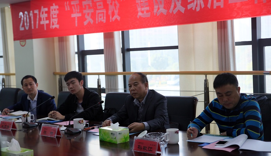 校长李建奇向考评组详细介绍了学校2017年度“平安高校”建设及综合治理工作情况。他指出,2017年学校维稳综治安全工作主要以“平安高校”建设为载体,以创新工作方式为手段,专注做好维稳、消防、治安等基础工作。与此同时,学校还深入开展了突发事件处置、校园诈骗整顿、校园交通整治等重点工作,为学校创造良好的育人环境,也为教育事业的持续健康发展提供了保障。