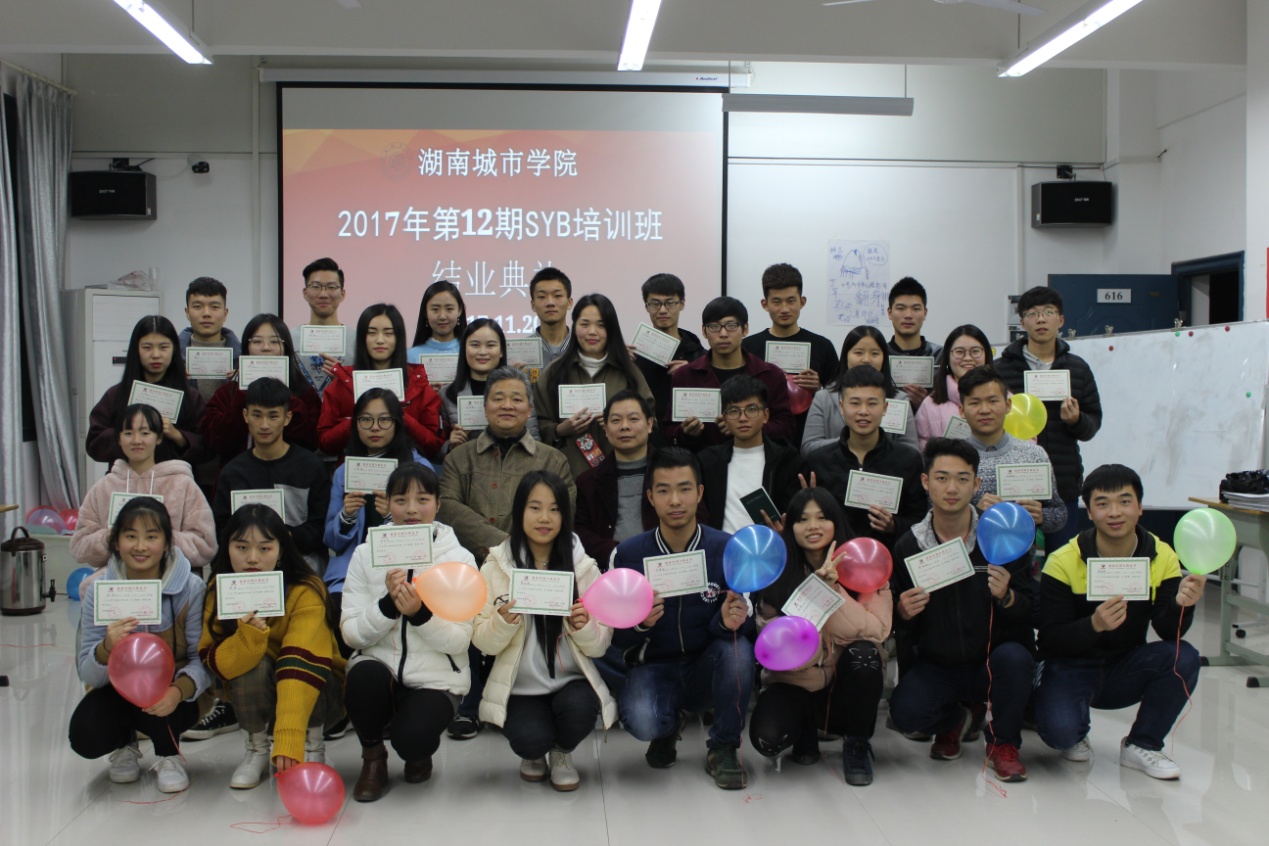 (本网讯)经过为期7天的培训,由学校继续教育学院举办的2017年第12期SYB创业培训班在土木楼SYB培训室举行了结业典礼,30名受训学员获得SYB结业证书,至此beat365官网共有360名学生通过了SYB创业培训。