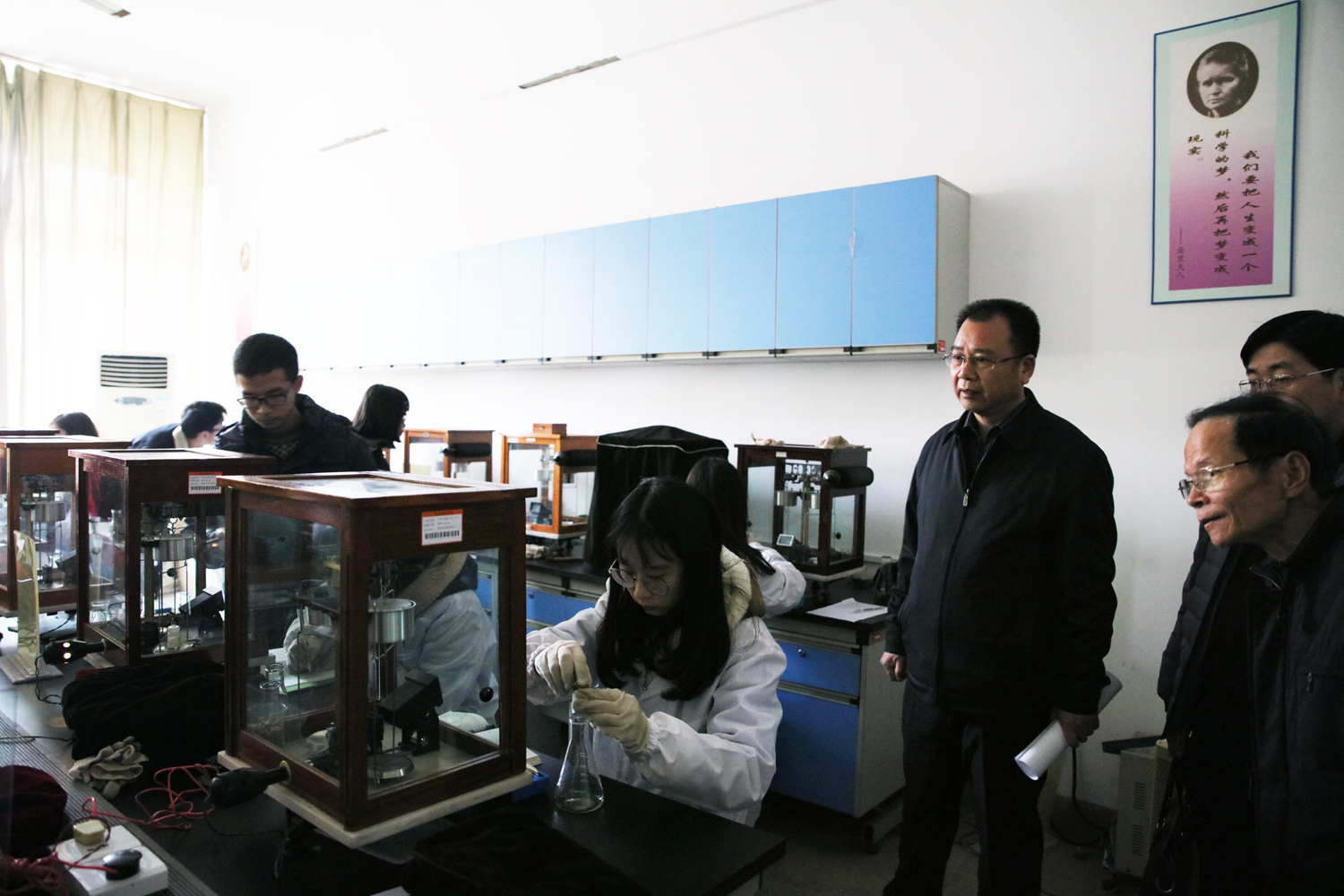 在材料与化学工程学院检查实验室(中心)建设情况时,李建奇与任课教师及学生进行了亲切交谈,仔细查看了实验记录本和实验报告。他要求学院要特别注意安全问题:一要根据上级部门要求和有关管理制度,严格处理好遗留化学物品;二要保管好危险化学物品,杜绝安全事故的发生;三要加大教师实验教学能力培养,提高人才培养质量。