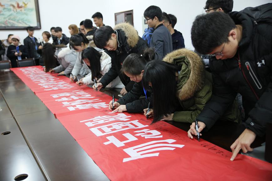 (本网讯)12月13日是南京大屠杀者国家公祭日。晚7时,由宣传部、校团委组织“南京大屠杀死难者国家公祭日”纪念活动在第二办公楼518室举行。宣传部、校团委相关负责人,学生会主要干部,“习近平新时代中国特色社会主义思想读书会”成员,部分学生代表参加活动,并在纪念横幅上签名。