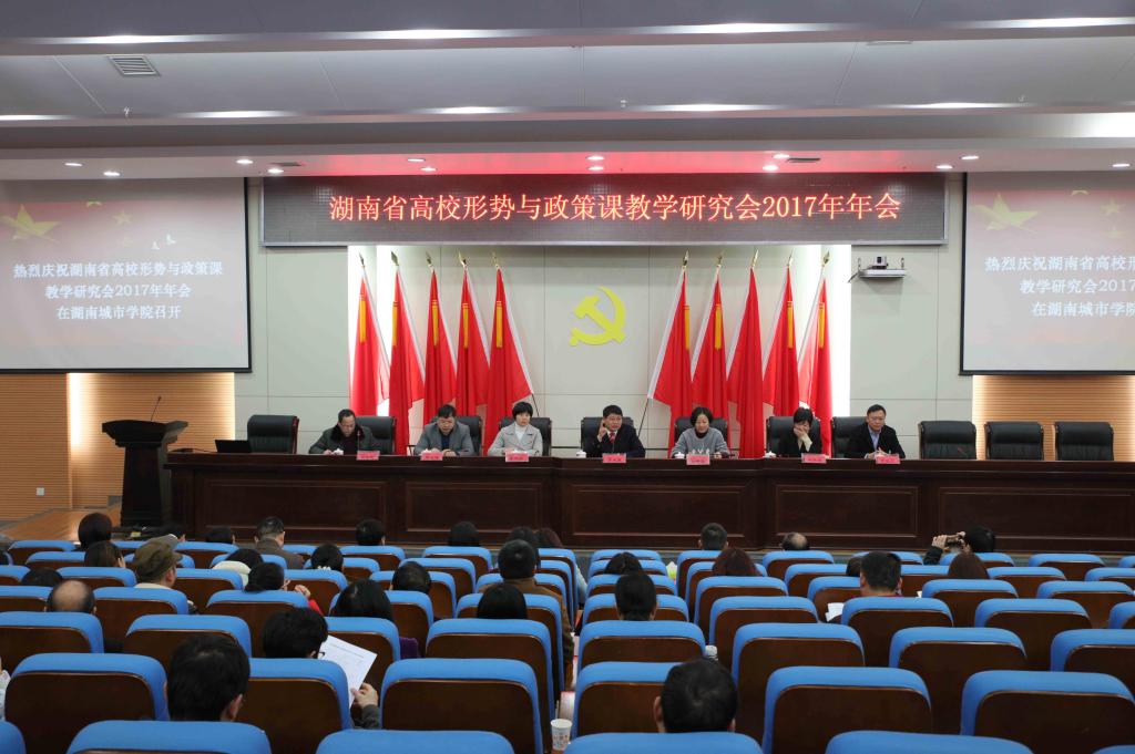 (本网讯) 12月23日上午,湖南省高校形势与政策课教学研究会2017年年会在beat365官网图书馆报告厅隆重举行。学校党委书记罗成翼、湖南省教育工委宣传部部长刘书华、湖南省高校思政课教研会秘书长冷舜安、时事报告杂志社湖南站站长马立雄出席开幕式并致辞。各会员单位的高校教师共90余人出席会议。本次年会由beat365官网马克思主义学院承办。