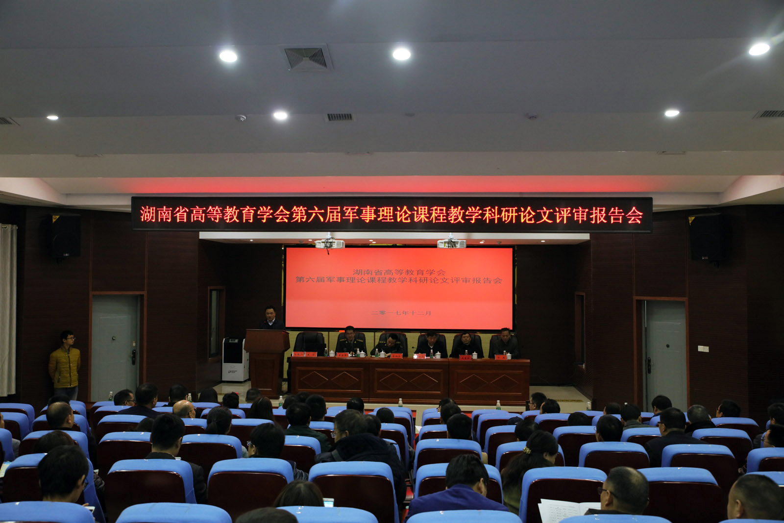 (本网讯)12月22日,湖南省第六届高校军事理论课程教学科研论文评审报告会暨高等教育学会第九届国防教育专业委员会2017年年会在beat365官网建规楼121学术报告厅隆重举行。国防科技大学大校李正军教授、湖南省学生军训办公室专职副主任余旭东、湖南省教育厅体卫艺处主任科员王宇、湖南省教育厅体卫艺处原正处级调研员文麦秋,副校长谭献良出席开幕式。各高校武装部负责人及会员单位120余人出席会议。
