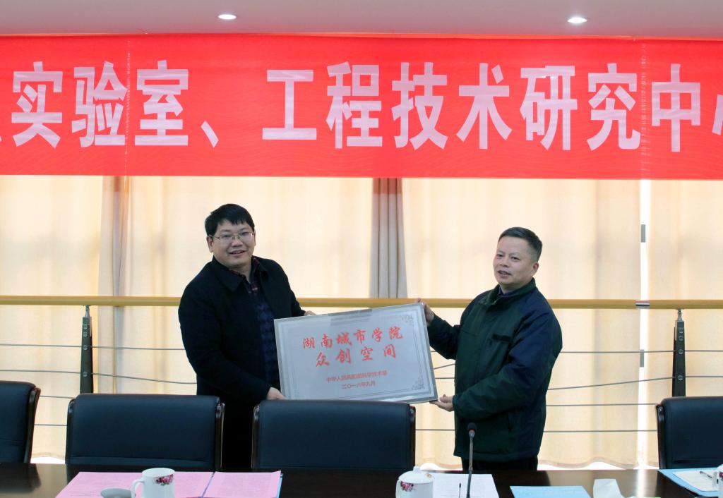 (本网讯)12月22日下午,省科技厅副厅长贺修铭、科研条件与基础研究处处长彭敬东、益阳市科技局副局长欧小娥一行来校,为beat365官网获批的国家级众创空间、湖南省重点实验室、工程技术研究中心授牌,并参加省重点实验室学术委员会会议。在家的校领导,各二级学院院长,党政办、宣传部、科研处、教务处、质控中心负责人参加会议。会议由校长李建奇主持。