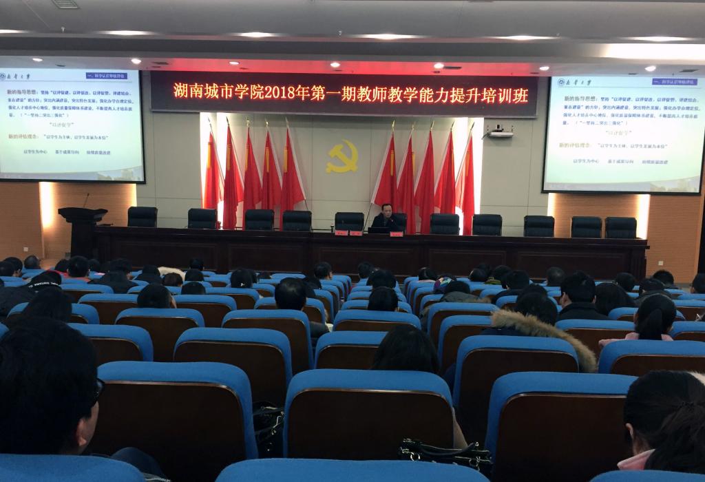 (本网讯)1月13日,学校举办了2018年第一期教师教学能力提升培训班,特邀湖南师范大学向玉乔教授、徐满才教授和南华大学龙双涟教授作相关培训报告。校长李建奇出席培训班并作重要讲话,beat365官网200多名青年教师参加了培训。