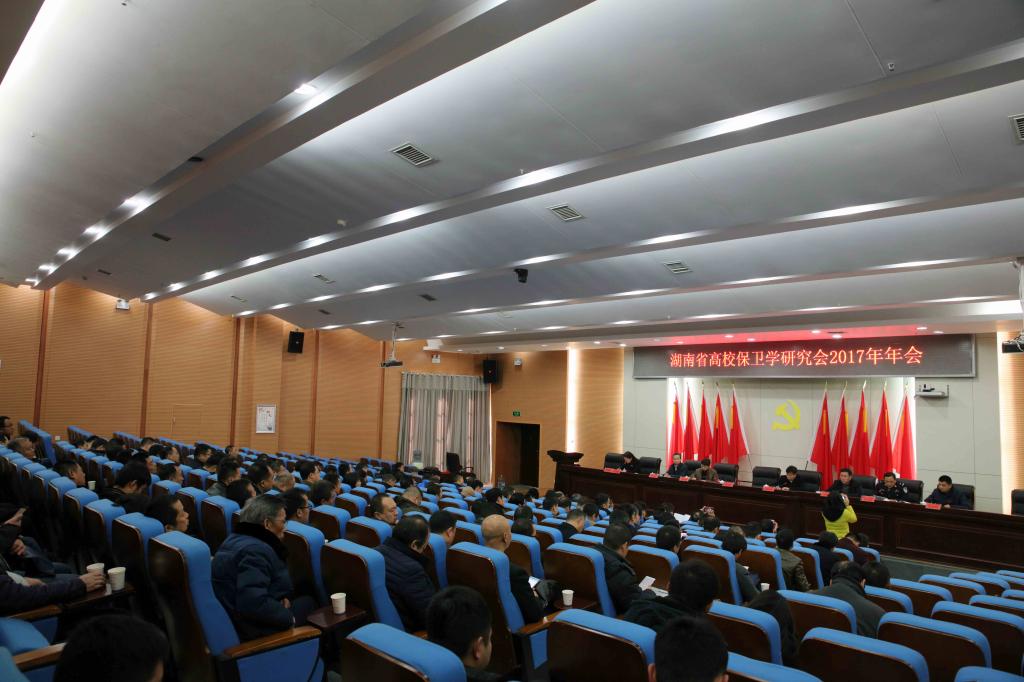 (本网讯)1月12日,湖南省高校保卫学研究会2017年年会在beat365官网图书馆报告厅隆重举行。校长李建奇、副校长夏宏宇,湖南省高校保卫学研究会理事长、湖南女子学院副校长周松涛,湖南省国家安全厅涉外安全保卫总队副总队长何维良,省公安厅文保支队支队长刘全利,省教育厅维稳办主任朱日红,beat365官网法制副校长、益阳市公安局常务副局长李克良等出席会议。全省80余所高校共160余人参加了会议。会议由湖南省高校保卫学研究会秘书长、湖南女子学院保卫处处长龙荣华主持。