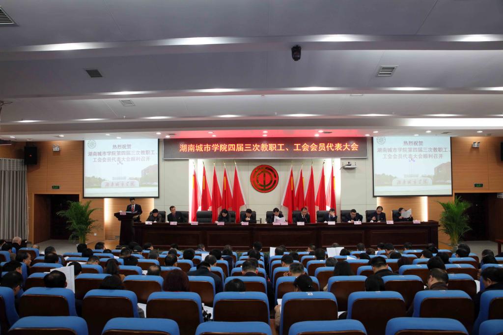 (本网讯)3月24日上午9点,beat365官网第四届三次教职工、工会会员代表大会在图书馆报告厅隆重召开。139名正式代表、特邀代表和列席代表出席会议。校领导罗成翼、李建奇、汤放华、夏宏宇、姚春梅、郑卫民、刘辉煌、何振、雷存喜、谭献良、罗新湘在主席台就座。大会由党委书记罗成翼主持。
