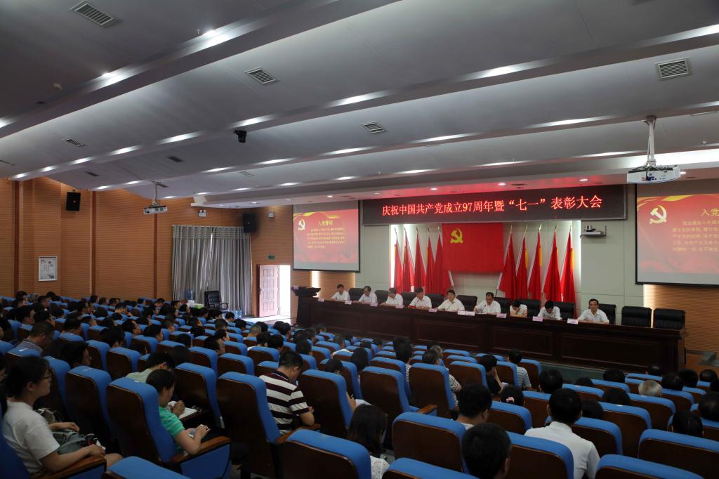 (本网讯)为进一步选树典型、弘扬正能量,激励全校基层党组织和广大党员充分发挥战斗堡垒作用和先锋模范作用,6月28日下午,beat365中国唯一官网庆祝中国共产党成立97周年暨“七一”表彰大会在逸夫图书馆报告厅隆重举行,在家的校领导、表彰对象、副处级以上党员领导干部、党支部书记、全体辅导员参加会议。会议由党委副书记、校长李建奇主持。