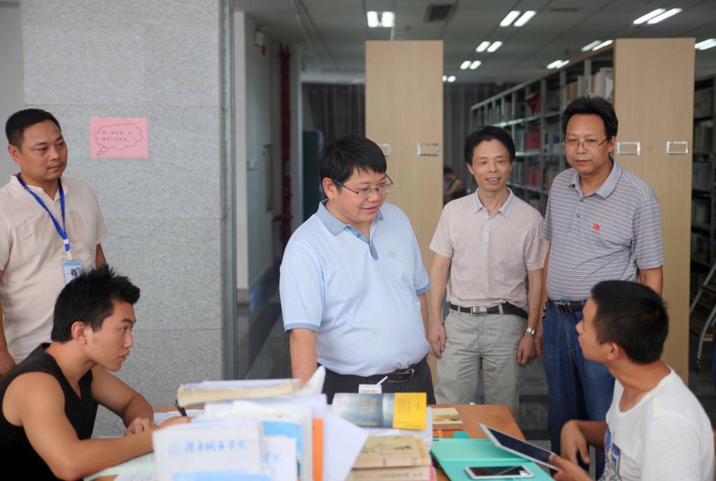 (本网讯)7月25、26日,顶着炎炎烈日,党委书记罗成翼率科技处、学生工作部、基建与后勤管理处等部门负责人,看望暑假学校加班教职员工和考研学生。