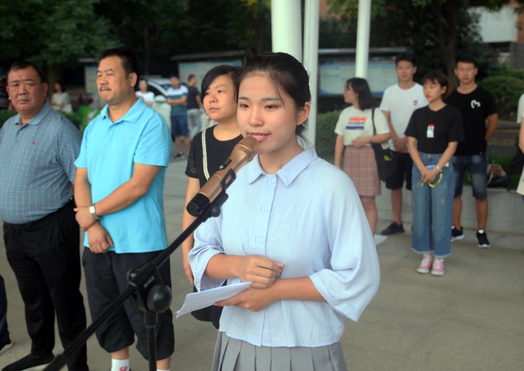 学生代表巣雅宜作了国旗下的发言,她向同学们发出了争做爱国敬业、诚信友善、力争上游的有志青年的倡议。
