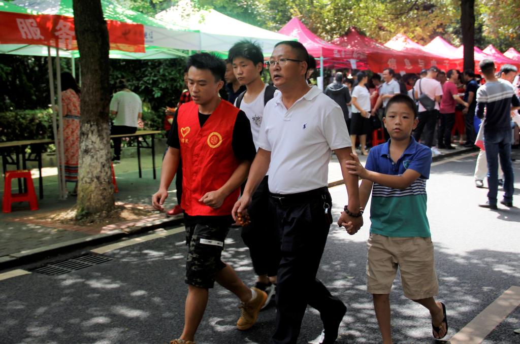 志愿者带领新生及家长办理入学手续