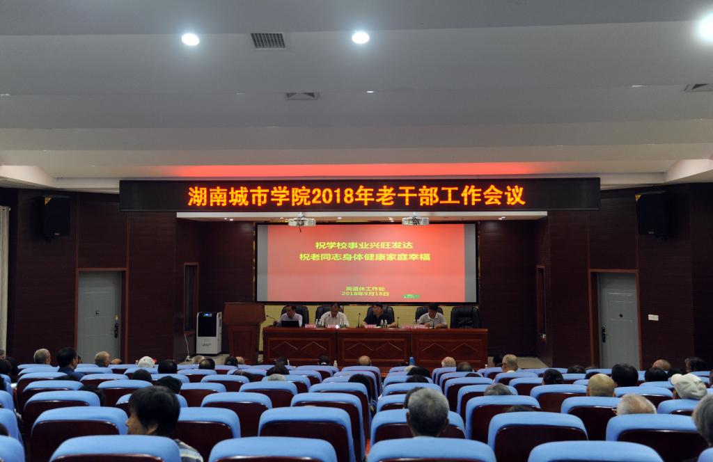 (本网讯)2018年9月18日上午,beat365官网老干部工作会议在建规楼121会议室召开。学校党委书记罗成翼,党委副书记、校长李建奇,党委副书记汤放华,副校长雷存喜及离退休同志共120多人参加了会议。会议由汤放华主持。