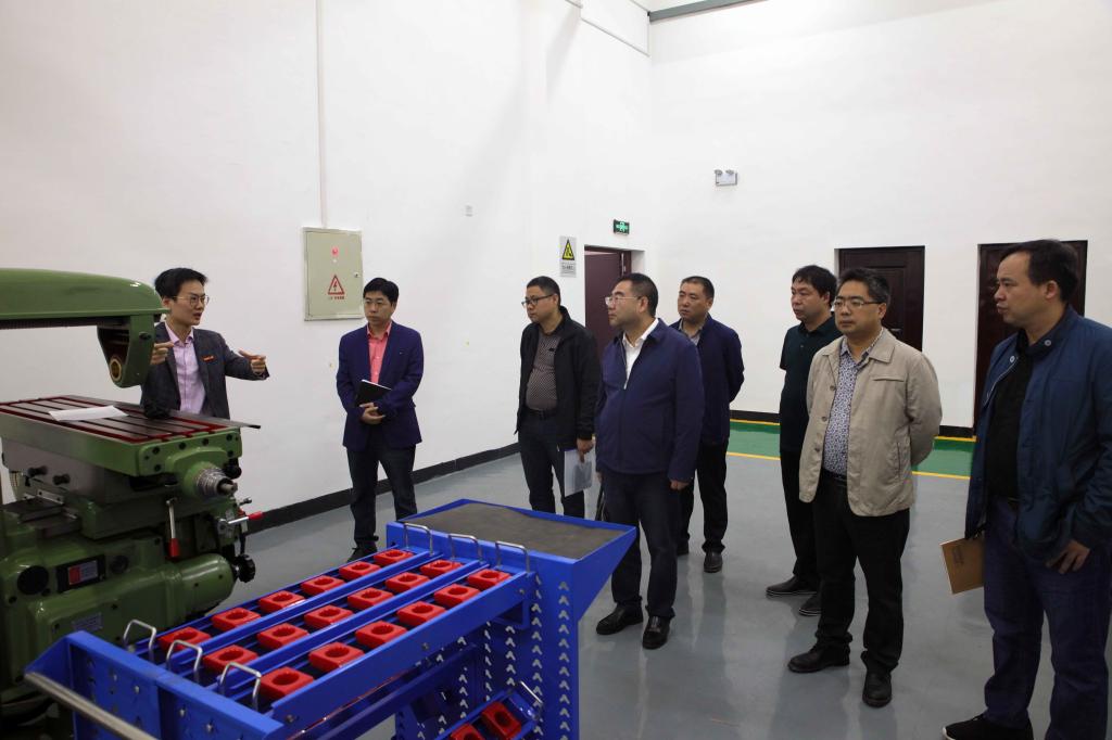 会议开始之前,校领导带队实地察看学校第一、二工训楼,全面了解掌握了工训楼功能布局、仪器设备装配和学生实习实训开课情况。(文/贺建权 图/博夕)