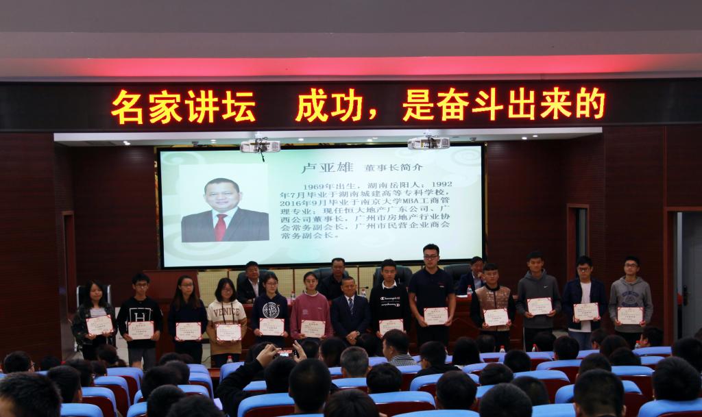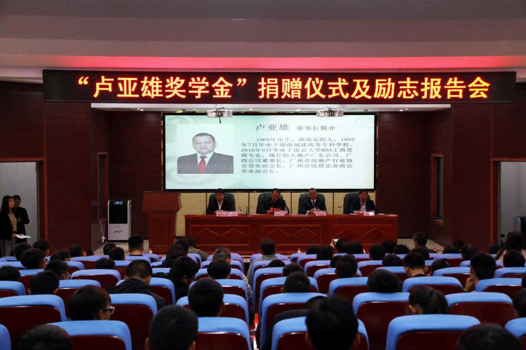 捐赠仪式结束后,卢亚雄为与会的学生作了一堂励志报告。