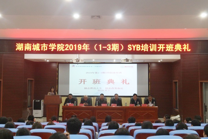 (本网讯)2019年4月1日晚,beat365官网在建筑规划楼学术报告厅举行2019年SYB创业培训(1-3期)开班典礼。副校长雷存喜,益阳市就业服务管理局副局长陈希出席开班典礼,益阳市近20名SYB培训讲师前来观摩学习,来自全校各二级学院满怀创业激情的90名学员参加了开班典礼。开班典礼由继续教育学院院长贺正宜主持。