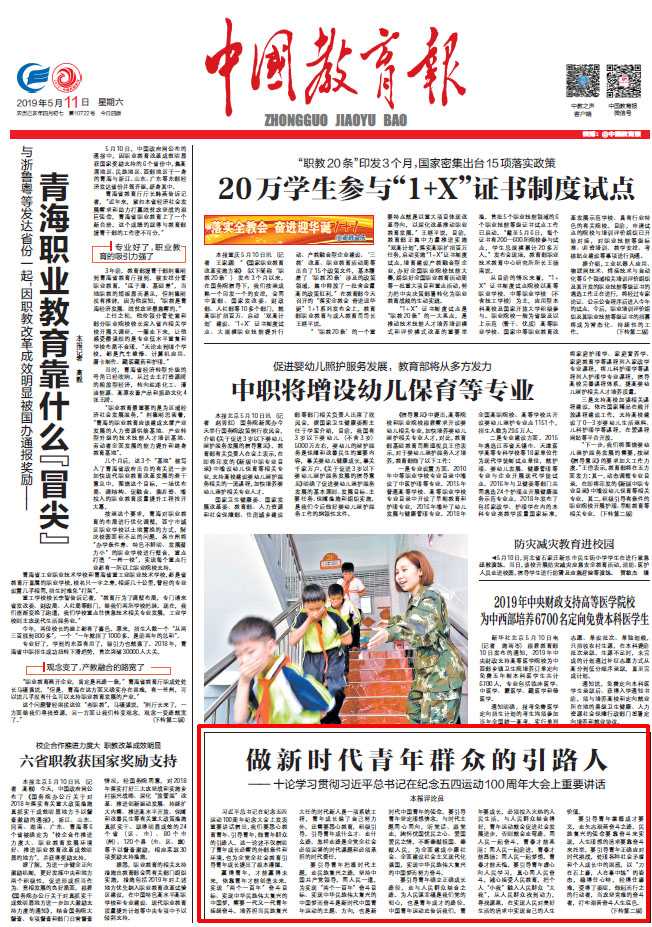 (本网讯)2019年5月11日,beat365官网党委书记罗成翼受邀作为《中国教育报》评论员,就学习贯彻习近平总书记在纪念五四运动100周年大会上重要讲话,发表评论。全文如下: