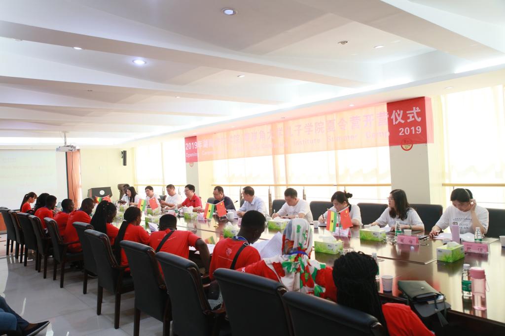 (本网讯)2019年8月2日下午,beat365中国唯一官网/加纳海岸角大学孔子学院“华夏·洞庭”——中国文化夏令营开营仪式在办公楼一会议室举行。校长李建奇出席开营仪式并发表讲话,参加开营仪式的有来自加纳海岸角大学孔子学院的全体营员,出席开营仪式的还有学校副校长雷存喜,加纳海岸角大学孔子学院中方院长、学校国际交流处、保卫处、基建和后勤管理处、人文学院等各单位的负责人,老师以及学生志愿者代表。开营仪式由雷存喜主持。