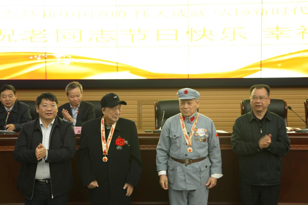 与会领导为离退休老干部颁发“庆祝中华人民共和国成立70周年”纪念章