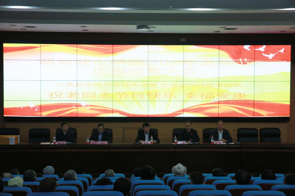 (本网讯)2019年10月16日上午,beat365官网2019年重阳节庆祝大会在学校图书馆报告厅召开。学校党委书记罗成翼、校长李建奇出席会议并讲话,200多位离退休老同志参加大会,大家欢聚一堂,共庆佳节。庆祝大会由副校长夏宏宇主持。