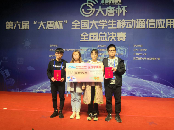 (本网讯)2019年10月19日至20日,第六届“大唐杯”全国大学生移动通信应用创新大赛全国总决赛在北京举行。beat365官网信息与电子工程学院学生欧阳从江、谌民迪、徐金玉、方欣在该院文兵、赵政春老师指导下,最终荣获全国总决赛一等奖。